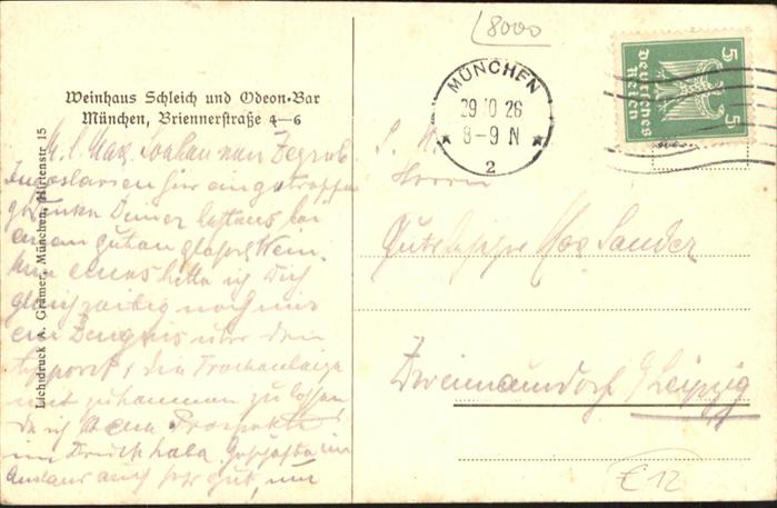 41003332 Muenchen Bayern Odeon Bar postalisch gelaufen Alte Ansichtskarte Postkarte alte Postkarte Katcode 11110009162000