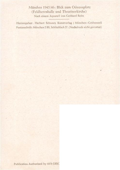 73900747 Muenchen Bayern Odeonplatz Feldherrnhalle und Theatinerkirche 1945 46 Aquarell postalisch nicht gelaufen Erhaltung siehe scans [WerneD78] Wern Katcode 11110009162000