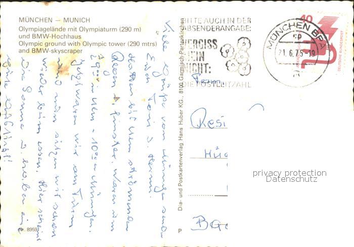 71911546 alte Postkarte Muenchen Bayern Olympiagelaende Turm und BMW-Hochhaus postalisch gelaufen Erhaltung siehe scans KatCode: 11110009162000