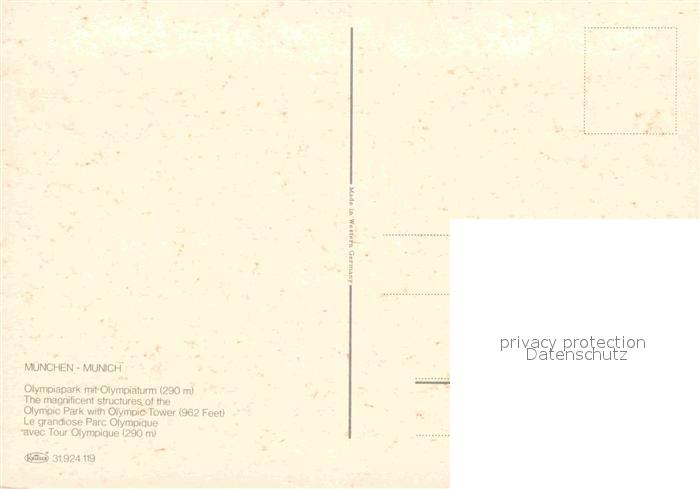 72719085 Muenchen Bayern Olympiapark mit Olympiaturm postalisch nicht gelaufen Erhaltung siehe scans [LiesaD40] KatCode: 11110009162000