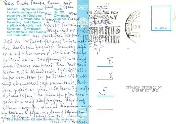 73723658 Muenchen Bayern Olympiapark Schwimmhalle mit Olympia und Radstadion postalisch gelaufen Erhaltung siehe scans [WerneD78] alte Postkarte Wern Katcode 11110009162000