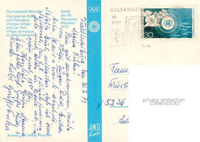 73712052 Muenchen Bayern Olympisches Dorf Fliegeraufnahme postalisch gelaufen Erhaltung siehe scans [WerneD78] alte Postkarte Wern Katcode 11110009162000