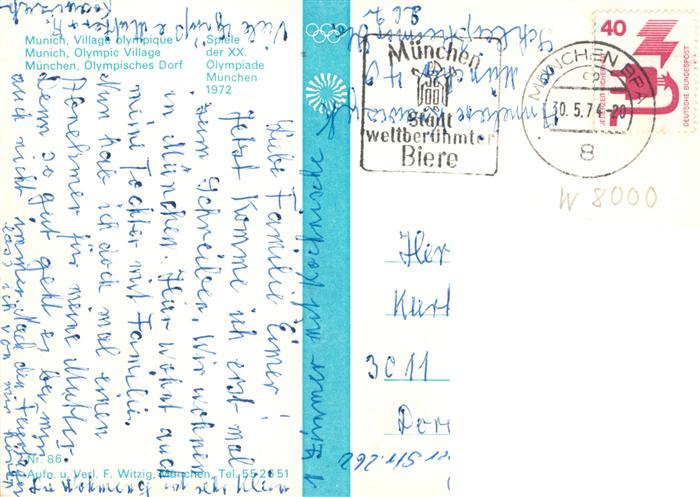 73919207 Muenchen Bayern Olympisches Dorf postalisch gelaufen Erhaltung siehe scans [WerneD78] alte Postkarte Wern Katcode 11110009162000