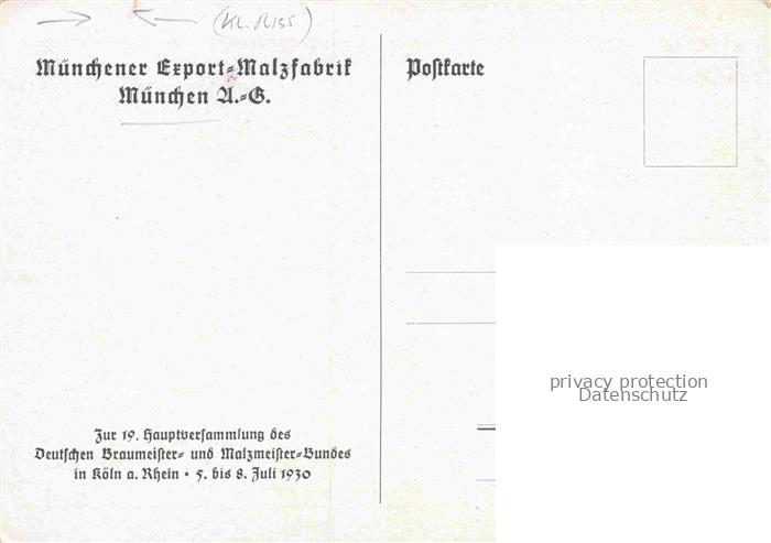 MueNCHEN Bayern Original-Gemaelde Muenchener Export-Malzfabrik zur 19. Hauptversammlung des Deutschen Braumeister- und Malzmeister-Bundes in Koeln Kuenstlerkarte postalisch nicht gelaufen Erhaltung siehe scans [FriedD77] Frie Katcode 11110009162000