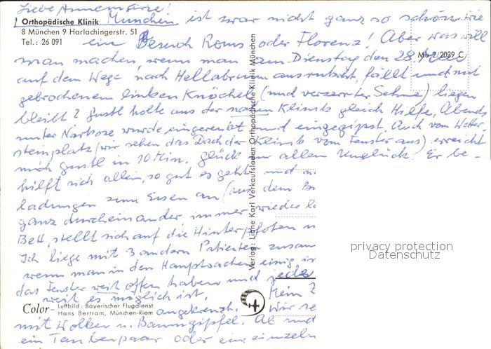 72597337 Muenchen Bayern Orthopaedische Klinik Fliegeraufnahme postalisch nicht gelaufen Erhaltung siehe scans [AndreD76] KatCode: 11110009162000