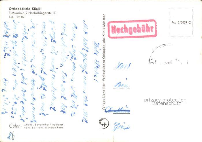 72074512 alte Postkarte Muenchen Bayern Orthopaedische Klinik Fliegeraufnahme postalisch gelaufen Erhaltung siehe scans KatCode: 11110009162000