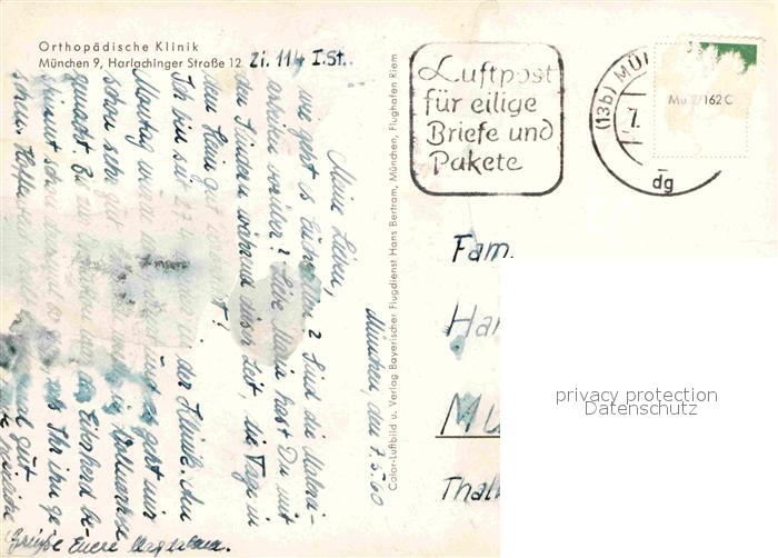 72895567 alte Postkarte Muenchen Bayern Orthopaedische Klinik Fliegeraufnahme postalisch gelaufen Erhaltung siehe scans [WerneD78] KatCode: 11110009162000