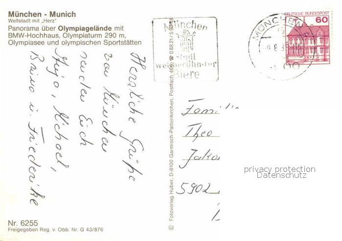 72685725 alte Postkarte Muenchen Bayern Panorama Olympiagelaende Olympiaturm BMW Hochhaus postalisch gelaufen Erhaltung siehe scans [WerneD78] KatCode: 11110009162000