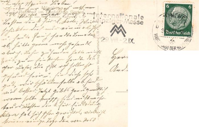 73899911 Muenchen Bayern Partie im Englischen Garten postalisch gelaufen Erhaltung siehe scans [WerneD78] alte Postkarte Wern Katcode 11110009162000
