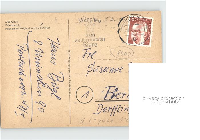 72109419 alte Postkarte Muenchen Bayern Petersbergl nach einem Original von Karl Winkel postalisch gelaufen Erhaltung siehe scans KatCode: 11110009162000