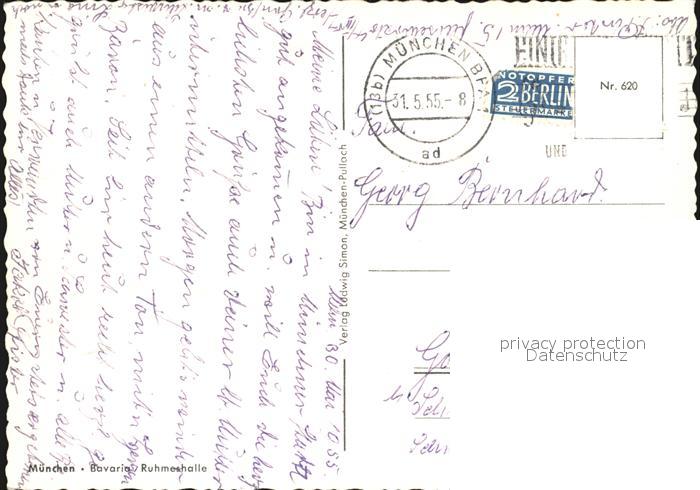 72395518 alte Postkarte Muenchen Bayern Pferdewagen Bavaria Ruhmeshalle postalisch gelaufen Erhaltung siehe scans KatCode: 11110009162000