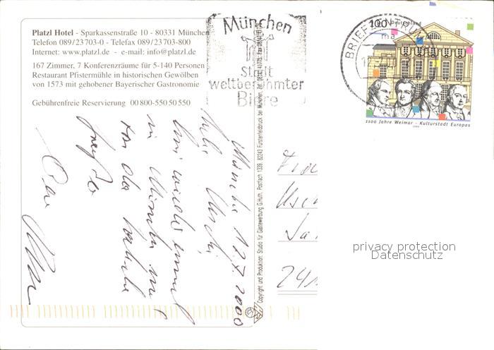 72011991 alte Postkarte Muenchen Bayern Platzl Hotel Oper Marienplatz postalisch gelaufen Erhaltung siehe scans KatCode: 11110009162000