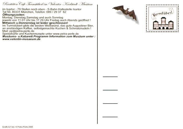 73915629 Muenchen Bayern Raritaeten Cafe Turmstueberl im Valentin Karlstadt Museum postalisch nicht gelaufen Erhaltung siehe scans [WerneD78] Wern Katcode 11110009162000