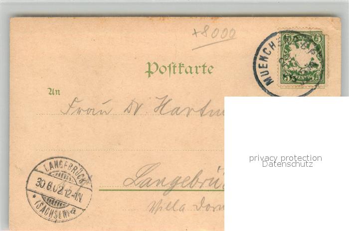 43156038 alte Postkarte Muenchen Bayern Rathaus Frauenkirche Petersturm Marienplatz Fischerbrunnen postalisch gelaufen Erhaltung siehe scans [KathaD81] KatCode: 11110009162000