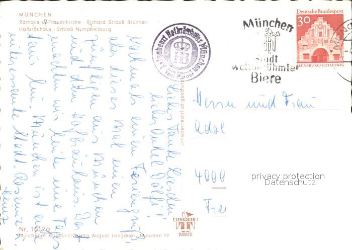 72349446 alte Postkarte Muenchen Bayern Rathaus Frauenkirche Richard Strauss Brunnen Hofbraeuhaus Schloss-Nymphenburg postalisch gelaufen Erhaltung siehe scans KatCode: 11110009162000