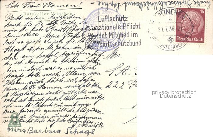 72433146 alte Postkarte Muenchen Bayern Rathskeller NZ3 postalisch gelaufen Erhaltung siehe scans KatCode: 11110009162000
