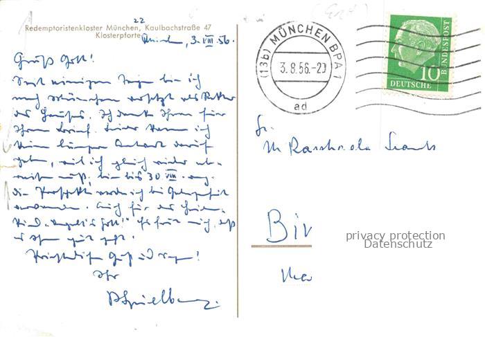 74009549 Muenchen Bayern Redemptoristenkloster Klosterpforte postalisch gelaufen Erhaltung siehe scans [WerneD78] alte Postkarte Wern Katcode 11110009162000