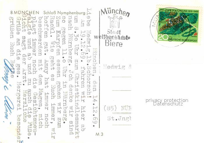 72757447 alte Postkarte Muenchen Bayern Schloss Nymphenburg postalisch gelaufen Erhaltung siehe scans [KathaD81] KatCode: 11110009162000