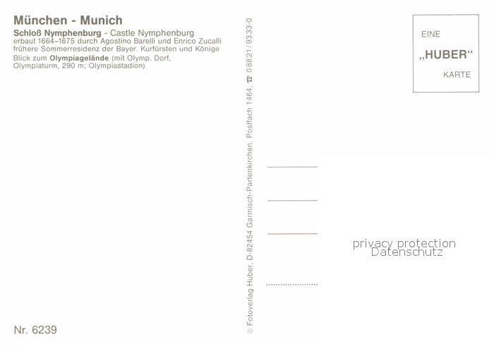 72852710 Muenchen Bayern Schloss Nymphenburg Blick zum Olympiagelaende Fliegeraufnahme Huber Karte Nr 6239 postalisch nicht gelaufen Erhaltung siehe scans [FriedD77] KatCode: 11110009162000