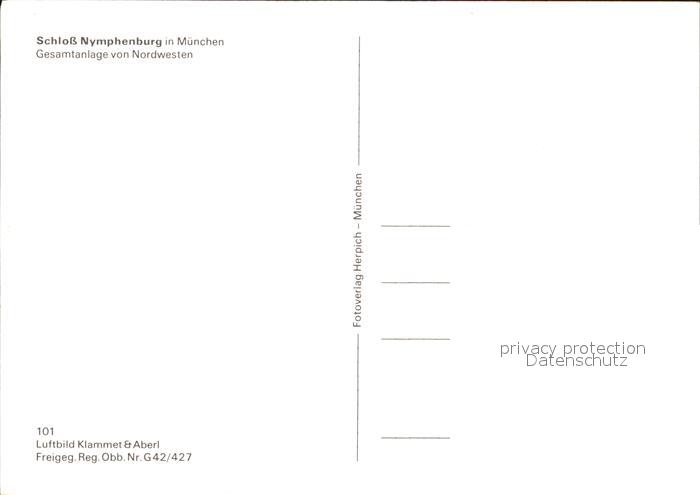 72535146 Muenchen Bayern Schloss Nymphenburg Fliegeraufnahme postalisch nicht gelaufen Erhaltung siehe scans [FriedD77 kt118box] KatCode: 11110009162000