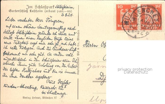 72126459 alte Postkarte Muenchen Bayern Schlosspark Gartenschloss Lustheim 17. Jhdt. postalisch gelaufen Erhaltung siehe scans KatCode: 11110009162000