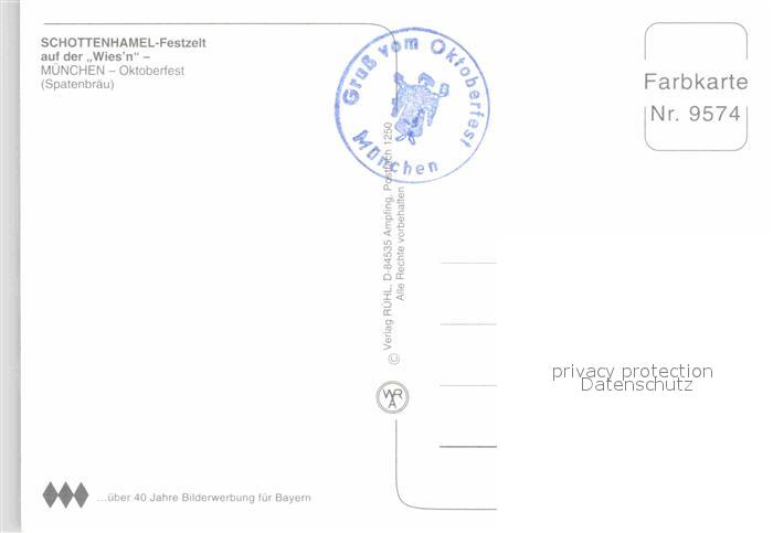 72868600 Muenchen Bayern Schottenhamel Festzelt auf der Wiesn postalisch nicht gelaufen Erhaltung siehe scans [WerneD78] KatCode: 11110009162000