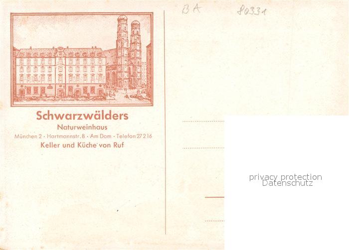 33659563 Muenchen Bayern Schwarzwaelder Naturweinhaus Gaststube postalisch nicht gelaufen Erhaltung siehe scans [WerneD78] Wern Katcode 11110009162000