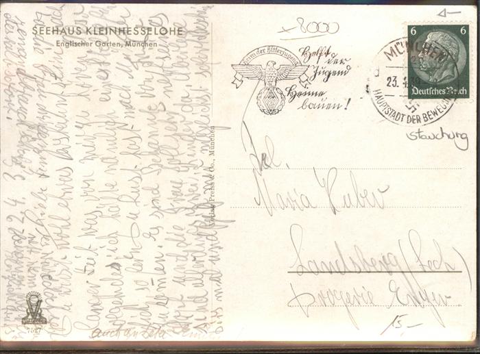 41058753 Muenchen Bayern Seehaus Kleinhesselohe postalisch gelaufen Alte Ansichtskarte Postkarte alte Postkarte Elvi Katcode 11110009162000
