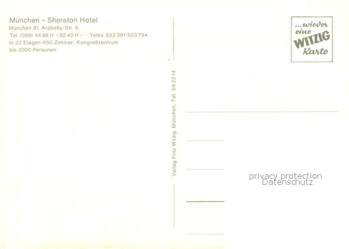 73716944 Muenchen Bayern Sheraton Hotel Aussenansicht postalisch nicht gelaufen Erhaltung siehe scans [LiesaD40] Lies Katcode 11110009162000