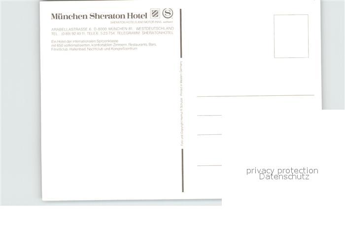 72582177 Muenchen Bayern Sheraton Hotel Fontaene Nachtaufnahme postalisch nicht gelaufen Erhaltung siehe scans [FriedD77] KatCode: 11110009162000