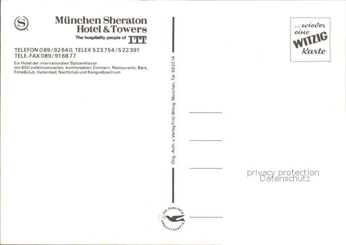 72263154 Muenchen Bayern Sheraton Hotel & Towers postalisch nicht gelaufen Erhaltung siehe scans KatCode: 11110009162000