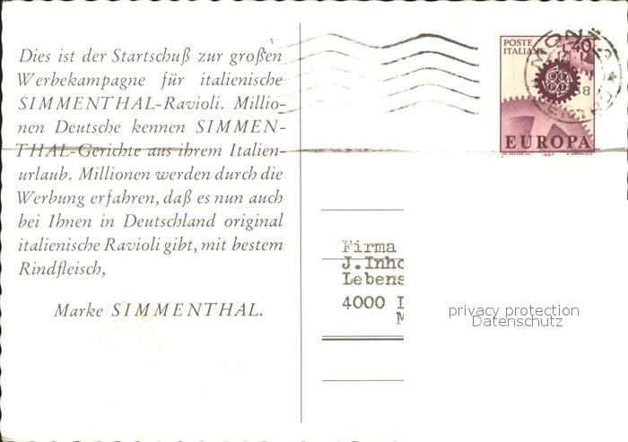 72292891 alte Postkarte Muenchen Bayern Simmenthal Ravioli Wertpostkarte postalisch gelaufen Werbekarte (keine Postkarte) Erhaltung siehe scans KatCode: 11110009162000