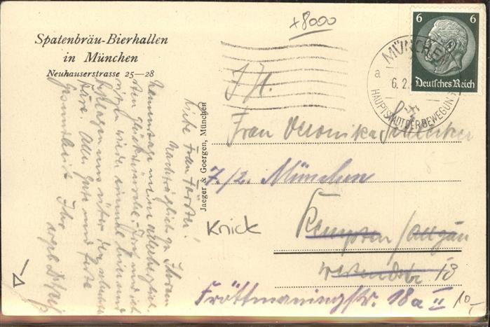 41058830 Muenchen Bayern Spatenbraeu Bierhallen postalisch gelaufen Alte Ansichtskarte Postkarte alte Postkarte Elvi Katcode 11110009162000