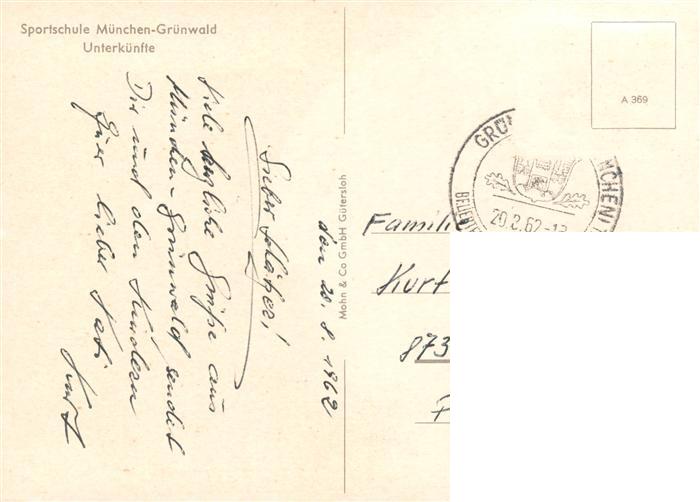 73913968 Muenchen Bayern Sportschule Gruenwald postalisch nicht gelaufen Erhaltung siehe scans [FriedD77] Frie Katcode 11110009162000