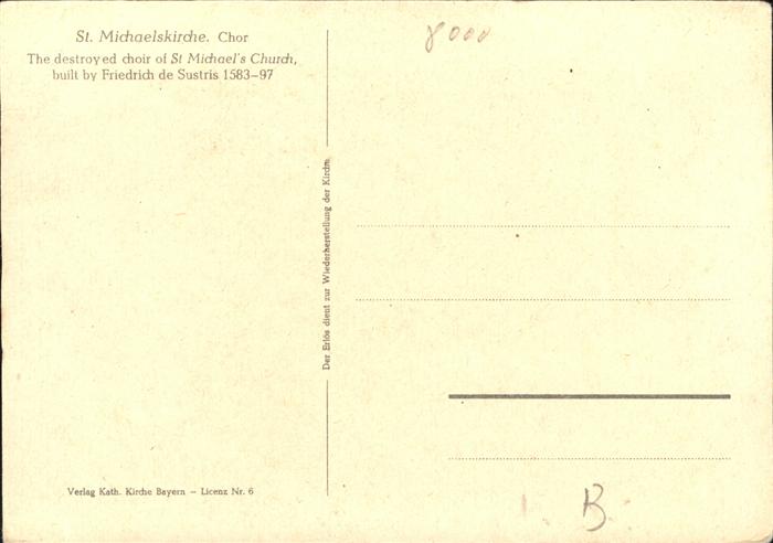 41334958 Muenchen Bayern St. Michaeliskirche Chor zerstoert Friedrich de Sustris postalisch nicht gelaufen gute Erhaltung Alte Ansichtskarte Postkarte hz_L Katcode 11110009162000