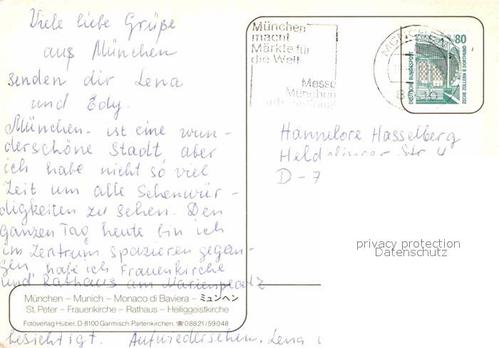 72859311 alte Postkarte Muenchen Bayern St Peter Frauenkirche Rathaus Heiliggeistkirche postalisch gelaufen Erhaltung siehe scans [WerneD78] KatCode: 11110009162000