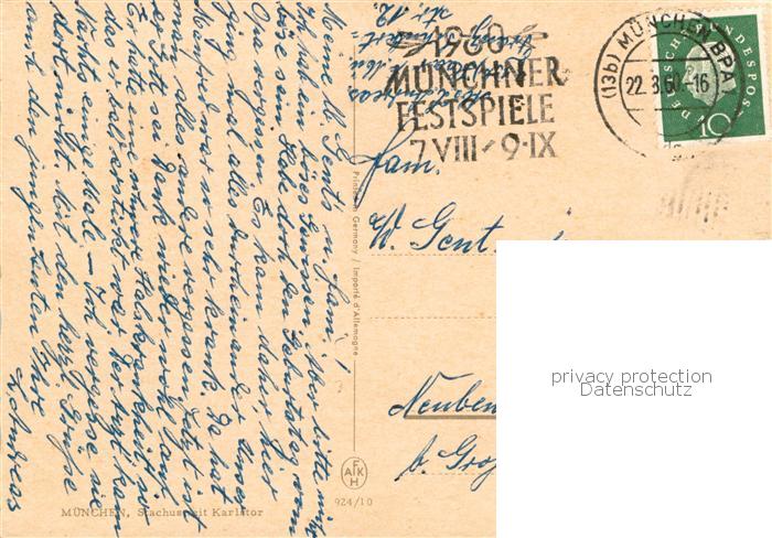 73836777 Muenchen Bayern Stachus mit Karlstor postalisch gelaufen Erhaltung siehe scans [FriedD77] alte Postkarte Frie Katcode 11110009162000