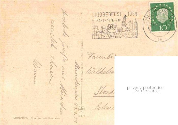 72742356 alte Postkarte Muenchen Bayern Stachus mit Karlstor postalisch gelaufen Erhaltung siehe scans [FriedD77] KatCode: 11110009162000