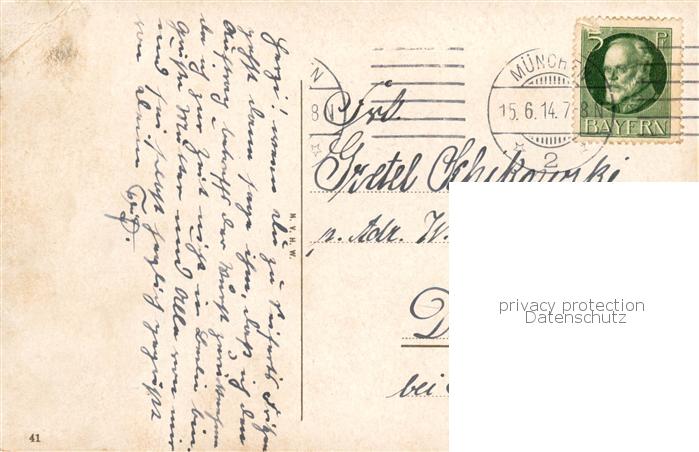 73808681 Muenchen Bayern Stadtblick mit Alpenpanorama postalisch gelaufen Erhaltung siehe scans [FriedD77] alte Postkarte Frie Katcode 11110009162000
