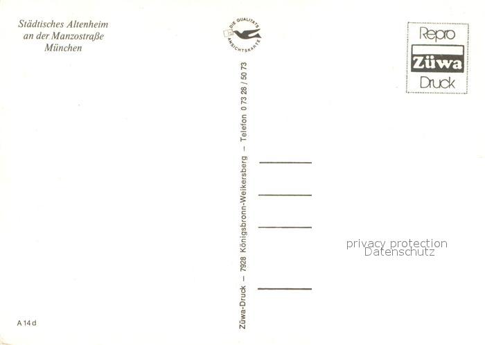 73649727 Muenchen Bayern Staedtisches Altenheim Manzostrasse postalisch nicht gelaufen Erhaltung siehe scans [WerneD78] Wern Katcode 11110009162000