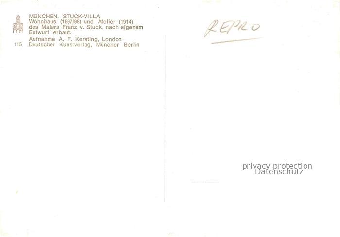 74039132 Muenchen Bayern Stuck-Villa Wohnhaus Atelier des Malers Franz von Stuck postalisch nicht gelaufen Reprokarte Erhaltung siehe scans [FriedD77] Reprokarte Frie Katcode 11110009162000