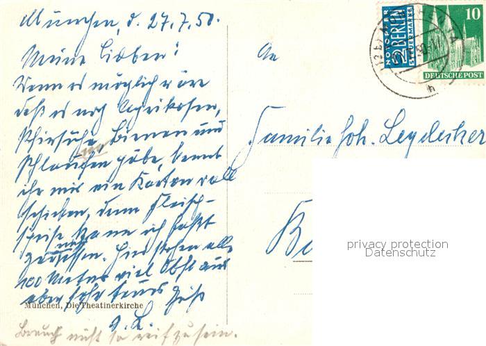72983430 alte Postkarte Muenchen Bayern Theatinerkirche postalisch gelaufen Erhaltung siehe scans [FriedD77] KatCode: 11110009162000