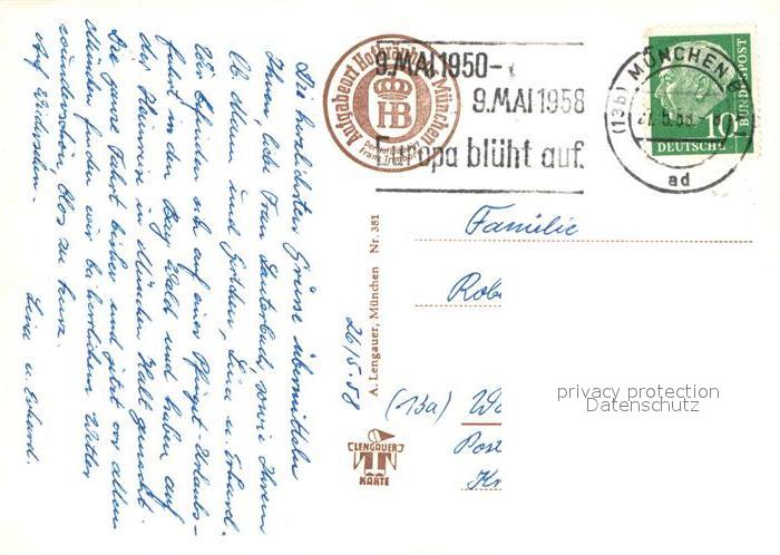 72983870 alte Postkarte Muenchen Bayern Theatinerkirche Karlsplatz Rathaus Frauenkirche Maximilianeum Hofbraeuhaus Bavaria Denkmal Statue Wittelsbacherbrunnen Schloss Nymphenburg Wappen postalisch gelaufen Erhaltung siehe scans [FriedD77] KatCode: 11110009162000