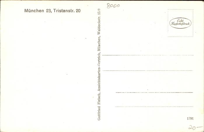 41215549 Muenchen Bayern Tristanstrasse 20 postalisch nicht gelaufen gute Erhaltung Alte Ansichtskarte Postkarte hz_U Katcode 11110009162000