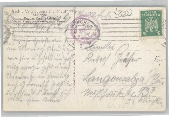 40742855 Muenchen Bayern uenstler A. Herrmann Gaststaette Platzl x postalisch gelaufen Alte Ansichtskarte Postkarte alte Postkarte Katcode 11110009162000
