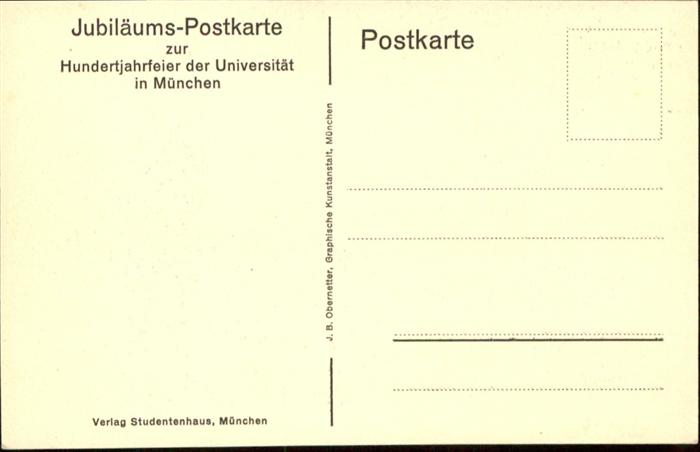41041892 Muenchen Bayern Uni Hundertjahrfeier postalisch nicht gelaufen Alte Ansichtskarte Postkarte Ulri Katcode 11110009162000
