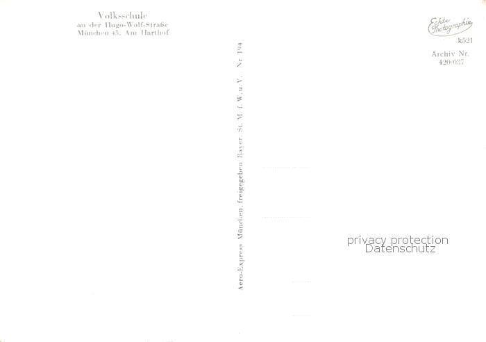 73852016 Muenchen Bayern Volksschule an der Hugo Wolfstrasse Fliegeraufnahme postalisch nicht gelaufen Erhaltung siehe scans [WerneD78] Wern Katcode 11110009162000