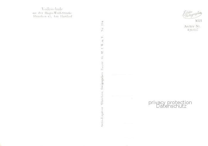 73852015 Muenchen Bayern Volksschule an der Hugo Wolfstrasse Fliegeraufnahme postalisch nicht gelaufen Erhaltung siehe scans [WerneD78] Wern Katcode 11110009162000