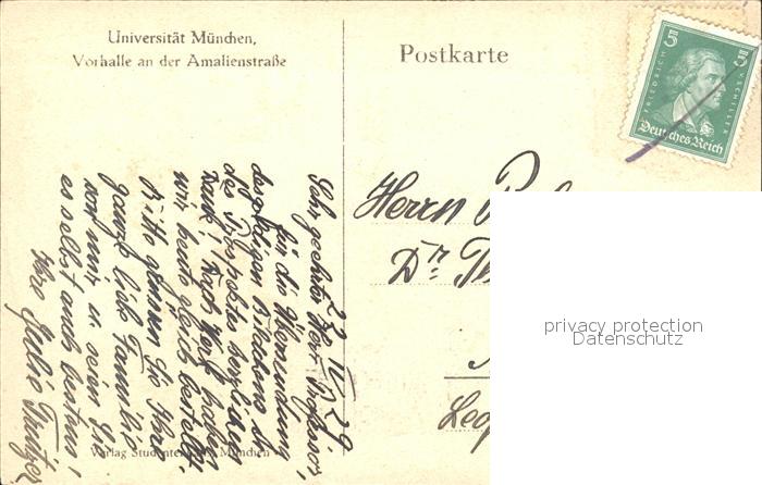 72148416 Muenchen Bayern Vorhalle Amalienstrasse postalisch nicht gelaufen Erhaltung siehe scans KatCode: 11110009162000