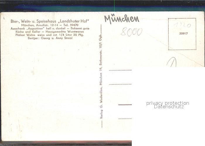 72149721 Muenchen Bayern Wein und Speisehaus Landshuter Hof postalisch nicht gelaufen Erhaltung siehe scans KatCode: 11110009162000